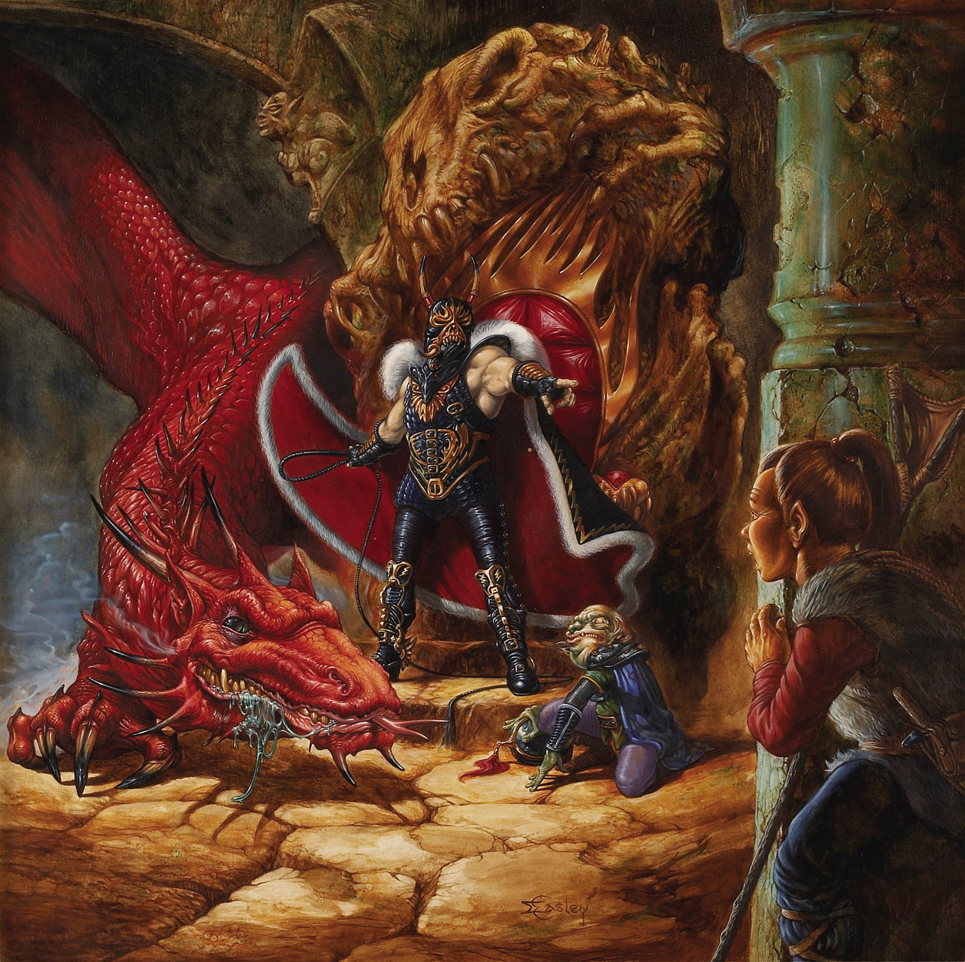 Seriously though, I have often found that smaller, more cunning dragons could present an especially well-played challenge to PCs (this October will mark the ten-year anniversary of my players' lamentation of the power and strategy of a 28-hit-point Young Adult Black Dragon and her 8-hit-point hatchling, for example) without having to be restricted to the status of 'unkillable gods' as one DM I know has done. Your statements also remind us of the fact that your game predates the video game RPG and had instead traditional and classical mythology as inspiration, which (at least in the West) does not require dragonkind to be at all all-powerful.