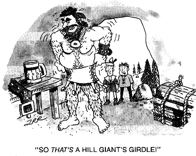 | Dice Roll | Type of Giant Strength | Rating | To Hit | Damage | Open Doors | <> | Weight Allowance | Range | Base Damage | Rock Wt. ** | Bend Bars/