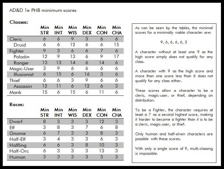 PCs, TABLE OF MINIMUM ABILITY SCORES