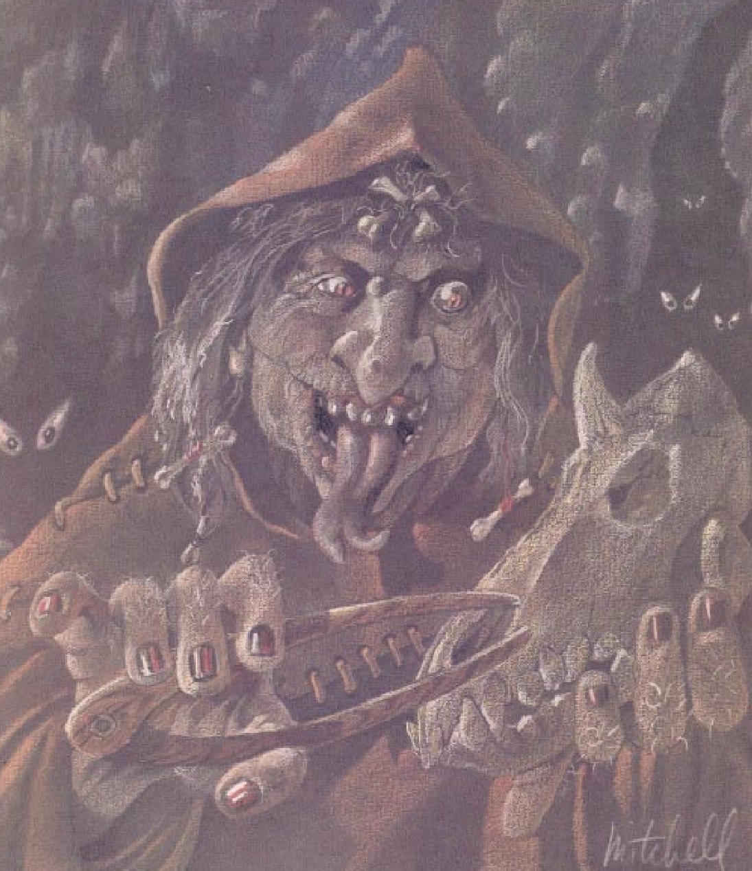 I'm thinking specifically of Iggwilv, of course, who is variously known as the Witch-Queen, Greatest of Witches, etc. as well as the denizens of Grimalkinsham in your Gord story, "Revel in Rel Mord". In the latter work, witches as a group seem on a par with Hags and Annises... and universally old, powerful, and ugly to boot. That seems to imply they are inhabitants of the lower planes just as are the hags, but then again it doesn't sound completely convincing, as one of the witches is said to be the Baronness of the good thorp of Grimalkinsham, implying a human origin.