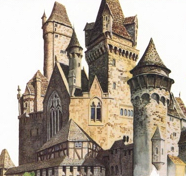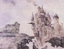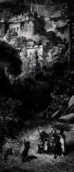 from the sides of the castle. A castle with