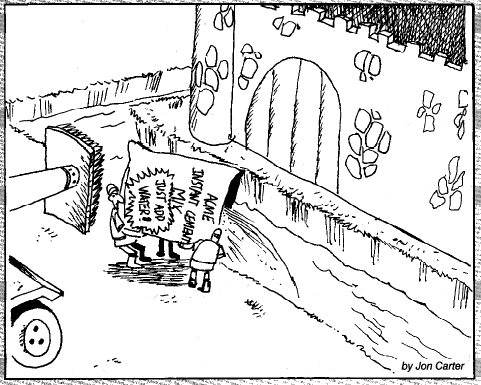 by a drawbridge.