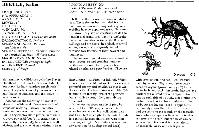 SPECIAL ATTACKS: Psionics; multiple attacks