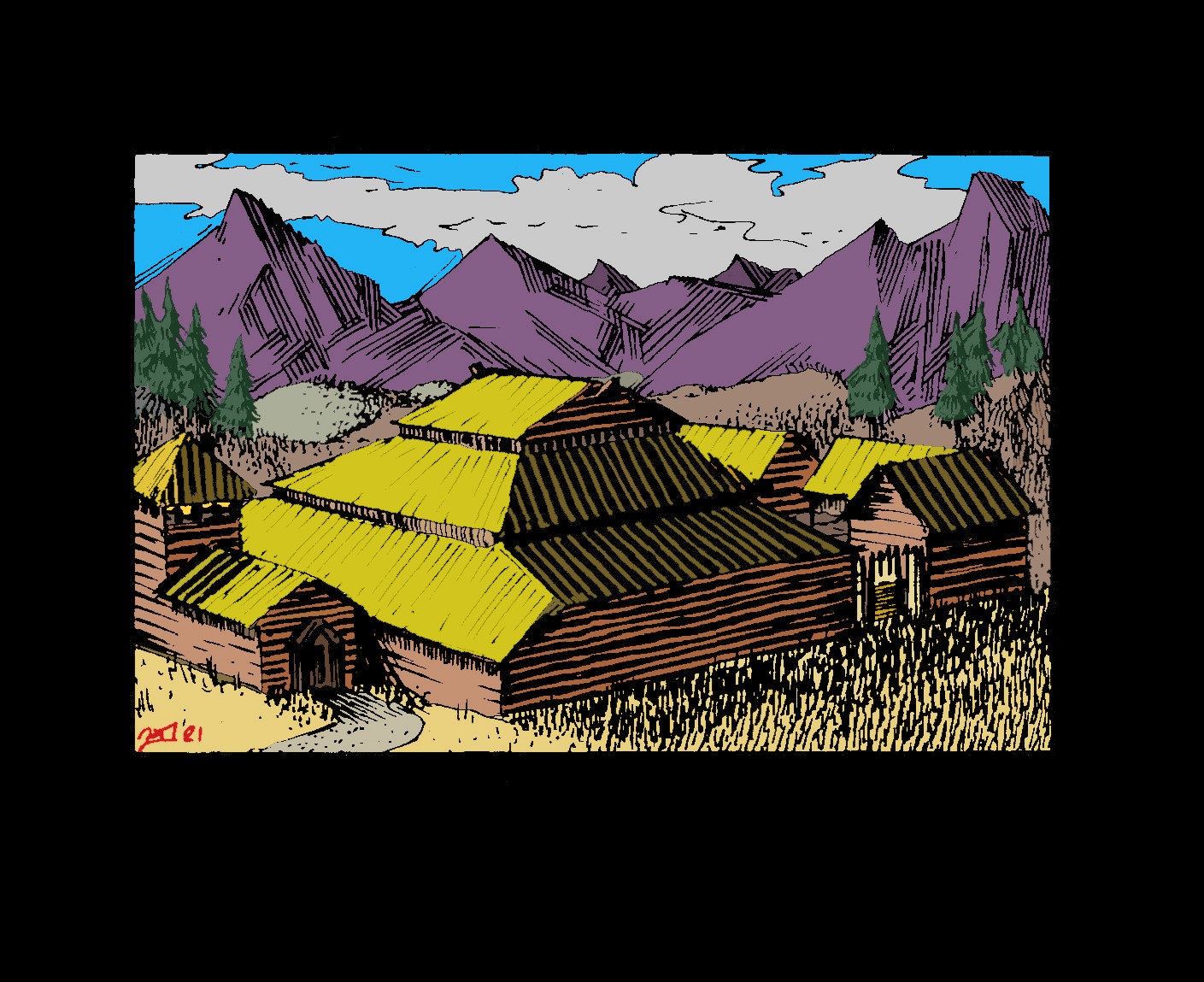 wooden fortress without visible windows, but